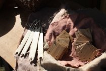 brikker og tyndt garn.
