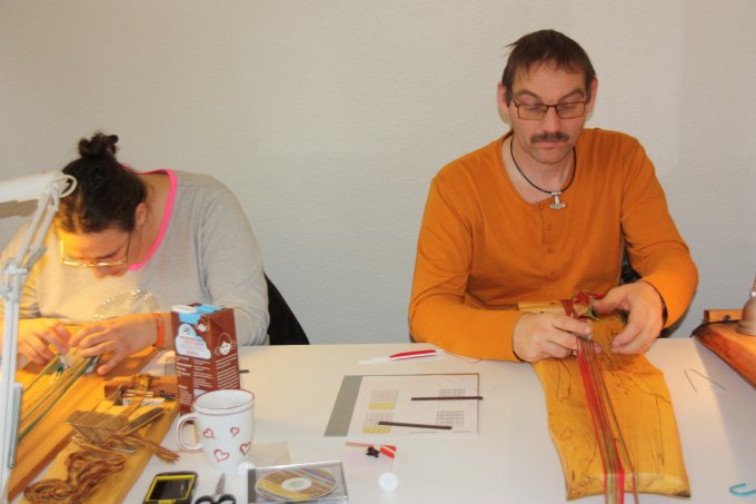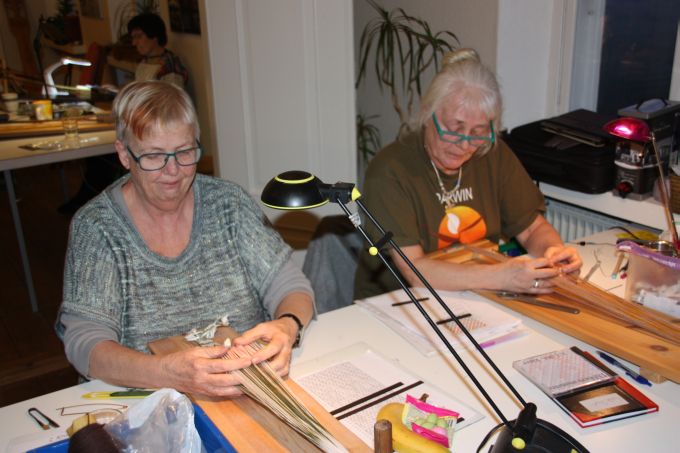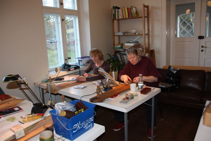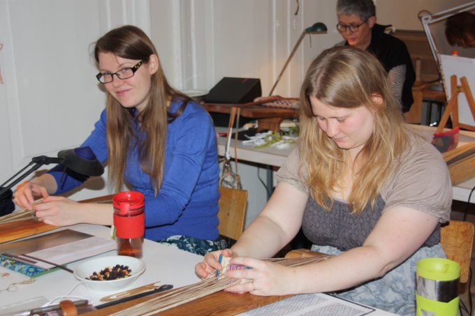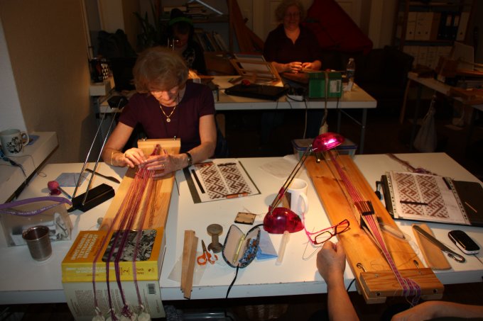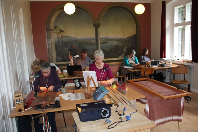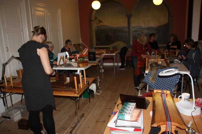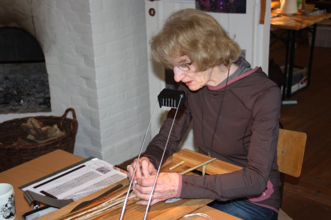 21. workshop Så går det atter mod lysere tider, og det kribler i fingrene. Nu skal der væves. Emnerne for 21. workshop var vævning af smalle kantebånd fra Lønne