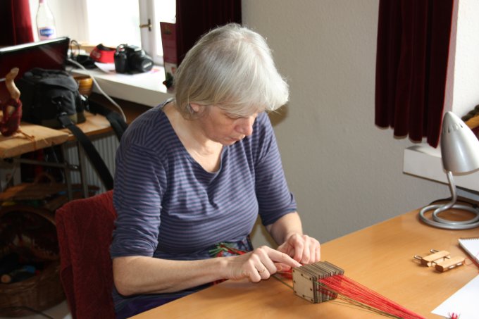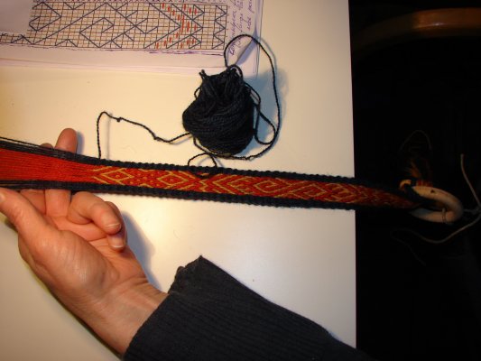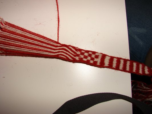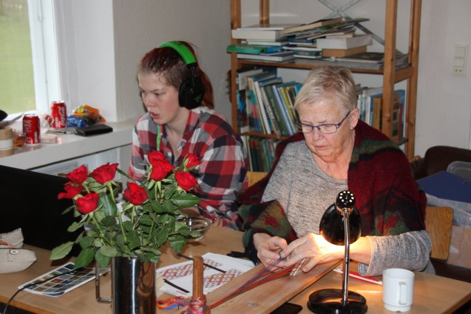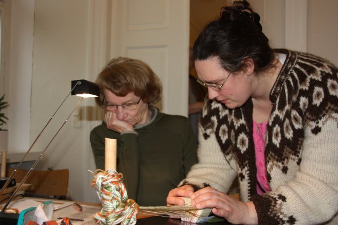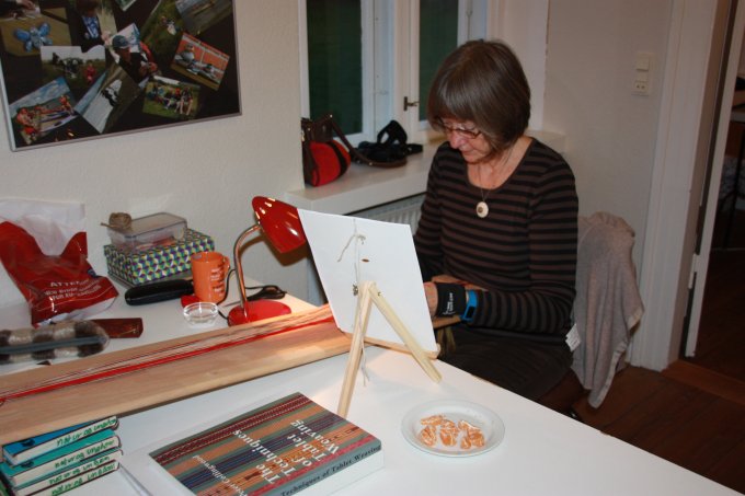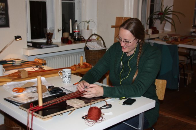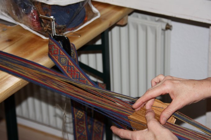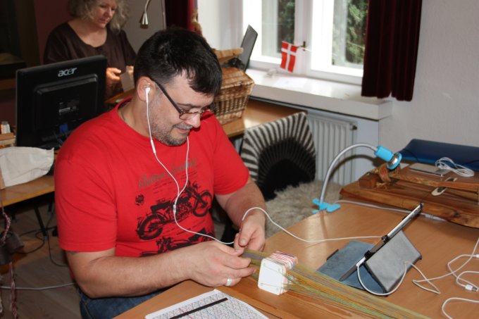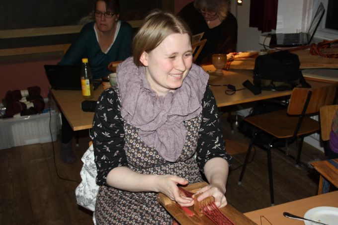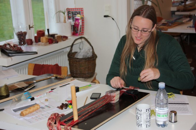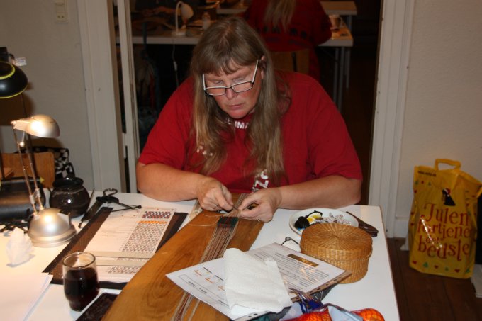 En af de nye deltagere gik i gang med et lille baltisk bånd - og til slut ligger mønsteret også rigtigt. |