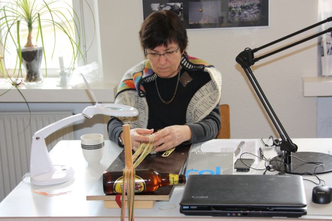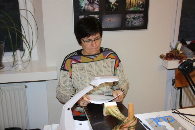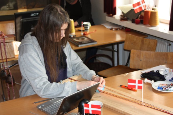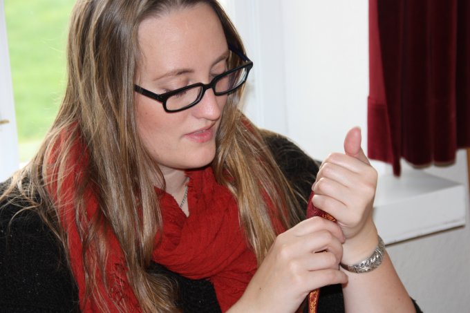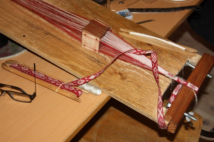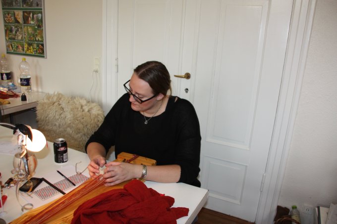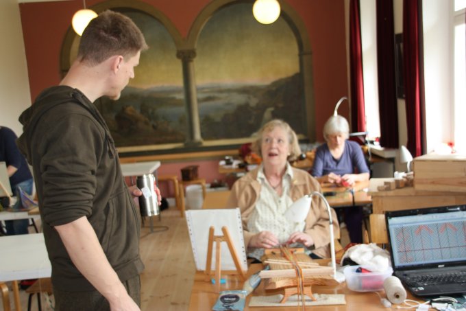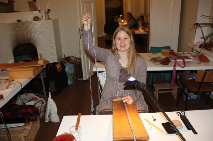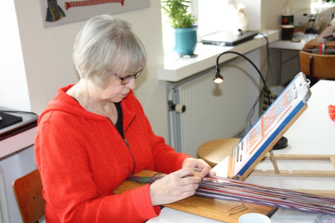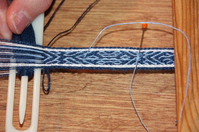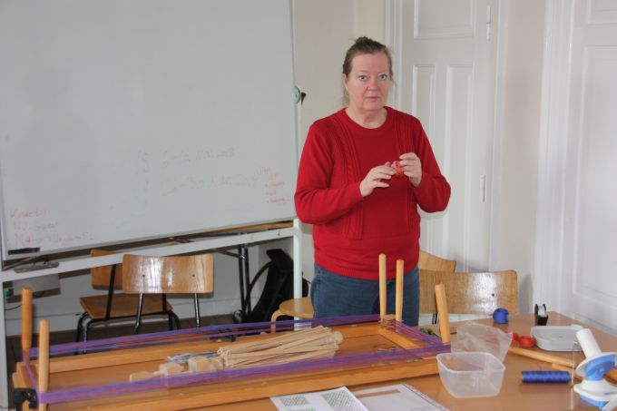 En af de nye deltagere gik i gang med et lille baltisk bånd - og til slut ligger mønsteret også rigtigt. |