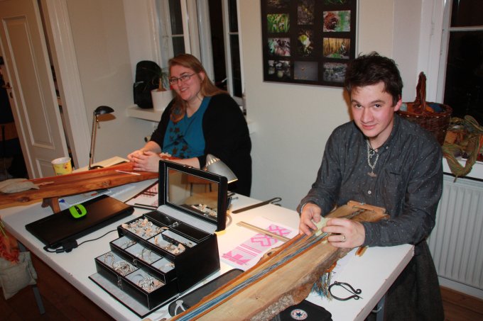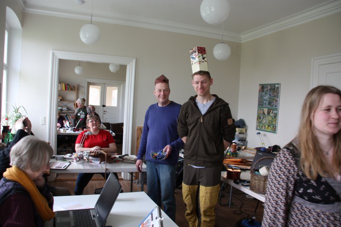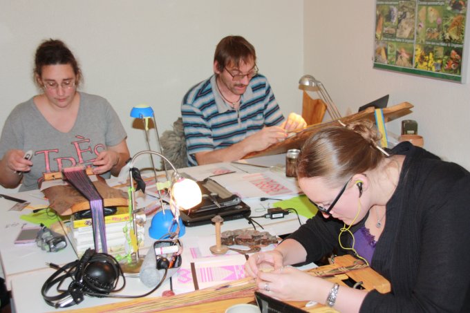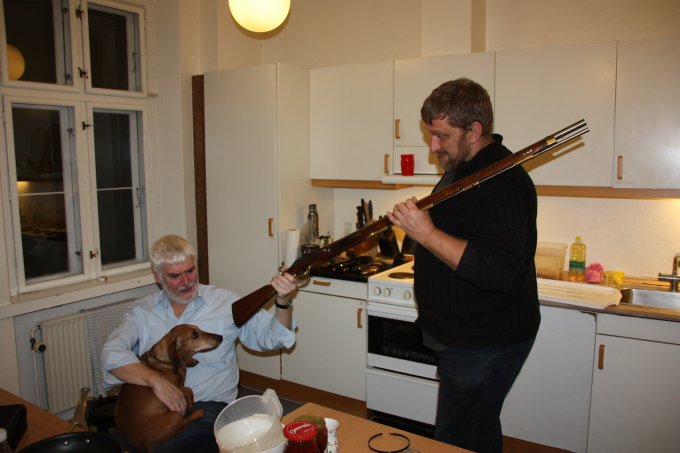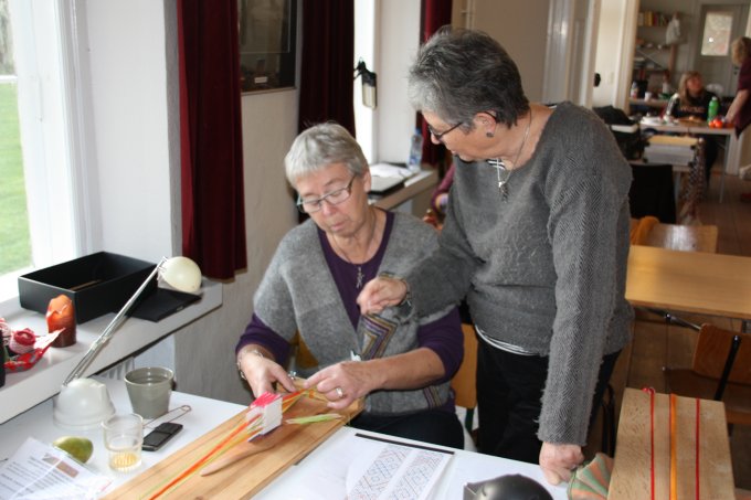 | Selv om det var en brikvævningsworkshop - skulle Jens og Torben lige prøve at lave kugler til sortkrudt. (De er i øvrigt fremragende som vævevægte) | |||||||||||||||