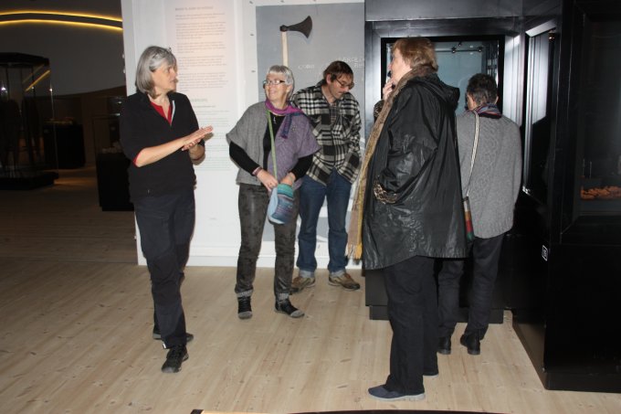udstilling med fundene fra motorvejsudgravningerne. Vi fik en særdeles spændende rundvisning af arkæolog Karen Rysgaard, der er en fremragende formidler. |