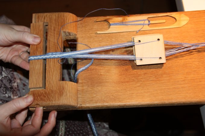 Her er en væver i gang med at gennemå de forskellige 4-trådede teknikker med en "2+2 trend" |